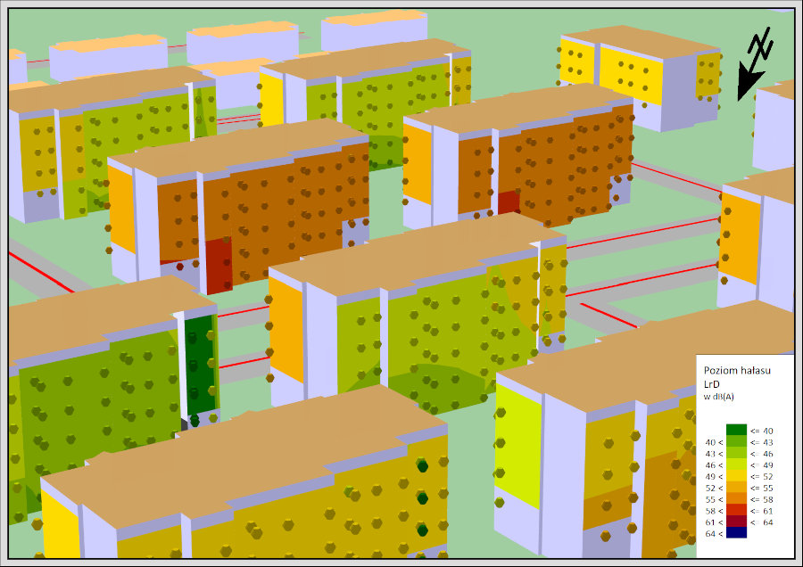 - analizę map akustycznych (dla miast powyżej 100 tys. mieszkańców),